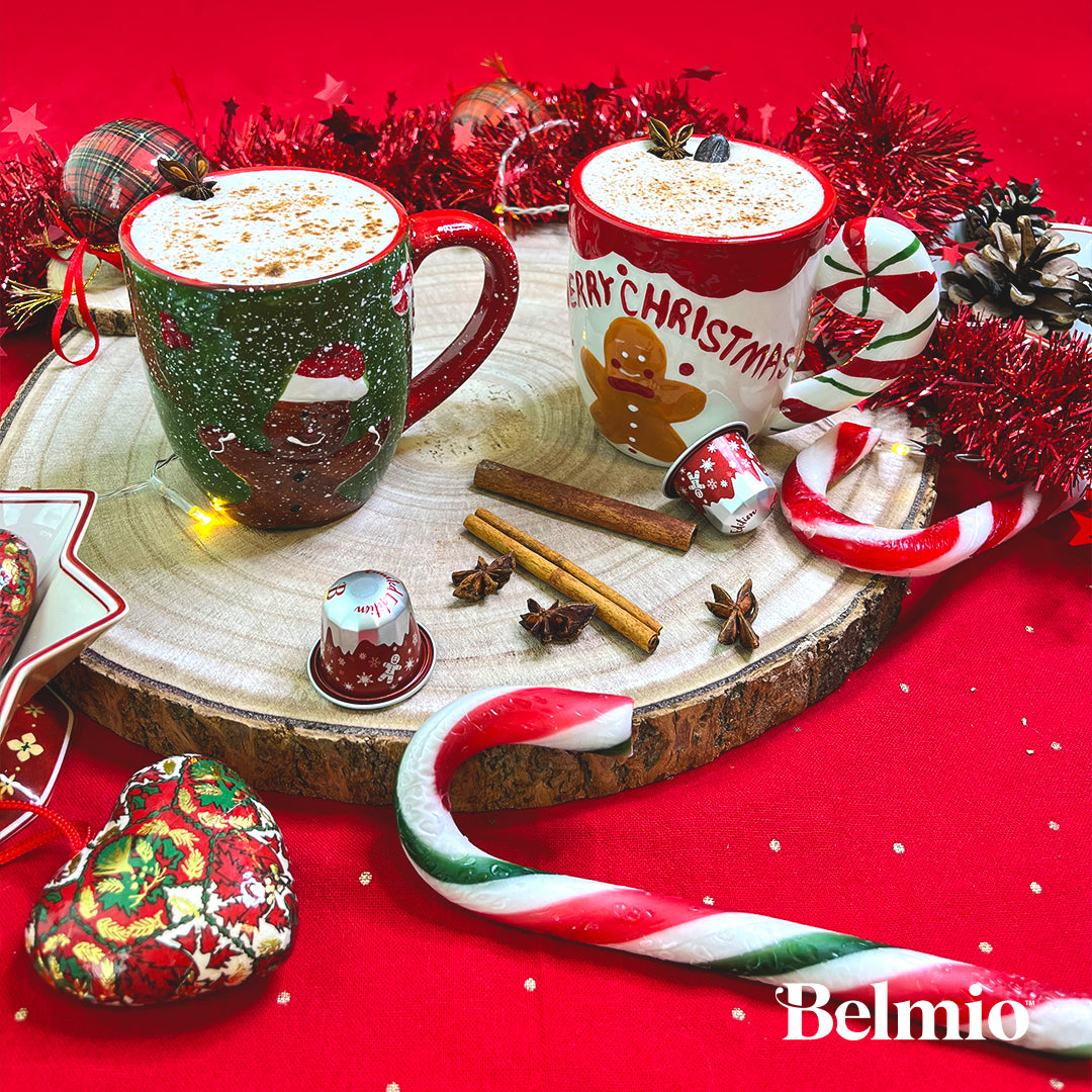 • Разпределете кафето Belmio Gingerbread Cookie между 2 чаши и го залейте с млякото за меденки.
